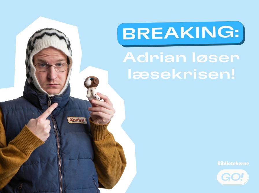 Børnene har talt. De har for travlt til at læse! Fra den 15. januar kan du opleve "BREAKING: Adrian løser læsekrisen" på eReolen GO og på GOs YouTube-kanal. Adrians læsetricks er skabt direkte af idéer fra over 60 børn i 5. og 6. klasse, som har delt deres løsninger på, hvordan man får tid til at læse i en travl hverdag.
